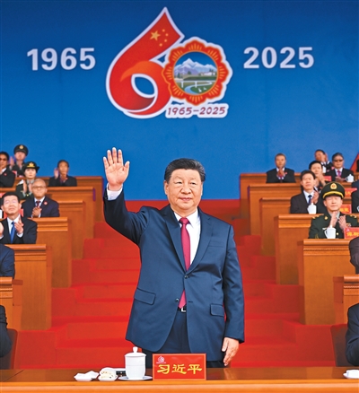 王沪宁发表讲话。他说,1965年9月,在党中央亲切关怀和党的民族政策光辉照耀下,西藏自治区宣告成立。这是西藏发展史上具有划时代意义的大事,巩固了西藏和平解放和民主改革的伟大成果,实现了西藏社会制度的历史性跨越。60年来,西藏经济社会全面发展,民族区域自治制度成功实践,民族团结日益巩固,各族人民生活蒸蒸日上,充分展现了中国共产党领导的坚强力量,充分展现了我国社会主义制度的显著政治优势。
