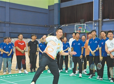 阳光透过哈尔滨工业大学体育馆的玻璃窗,洒在飞舞的羽毛球上。“食指松开半厘米,击球瞬间再扣紧,力量才发得透……”弯着腰,手握球拍,陈金正给学生演示发球要领。拥有9个世界冠军奖杯的陈金,如今是学生们争相抢课的“金牌教师”。