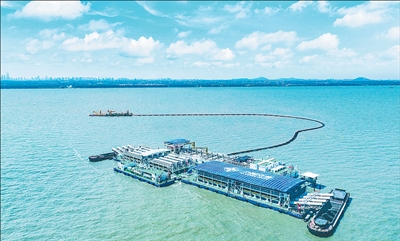 “如果在陆地,要达到目标水质标准和处理能力,至少需建设3000平方米的处理厂,而‘太湖之光’的余水处理船面积仅为420平方米。”“太湖之光”余水处理船总设计师黄佳音说,历时3年攻关,团队成功研发出一套综合余水处理系统,不仅单位面积处理能力超出传统陆域处理厂10多倍,出水标准也远优于太湖水质指标。