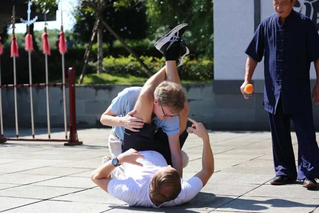图为瑞典《新日报》高级编辑艾萨克·博曼在2024“一带一路”媒体合作论坛采访调研峨眉行中展示巴西柔术 刘晓立摄