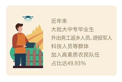 乡村全面振兴的宏伟蓝图,吸引着人才持续回流。有报告显示,近年来大批大中专毕业生、外出务工返乡人员、退役军人、科技人员等群体加入高素质农民队伍,占比达49.93%。这些活跃在农业生产一线的年轻人,成为大国粮仓背后重要的新生力量,为扛稳“国之大者”这一重任写下了鲜活的时代注脚。